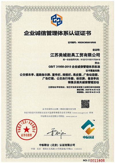 企業(yè)誠信管理體系認(rèn)證證書