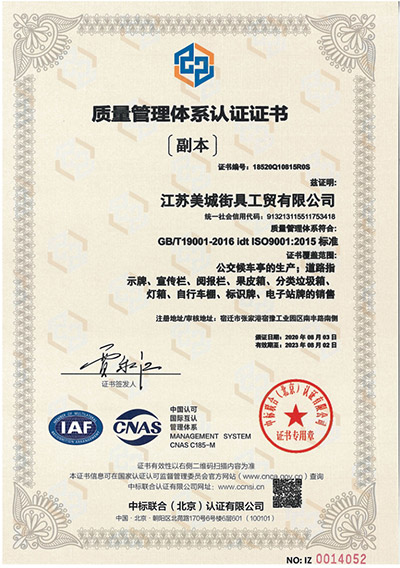 質(zhì)量管理體系認(rèn)證證書