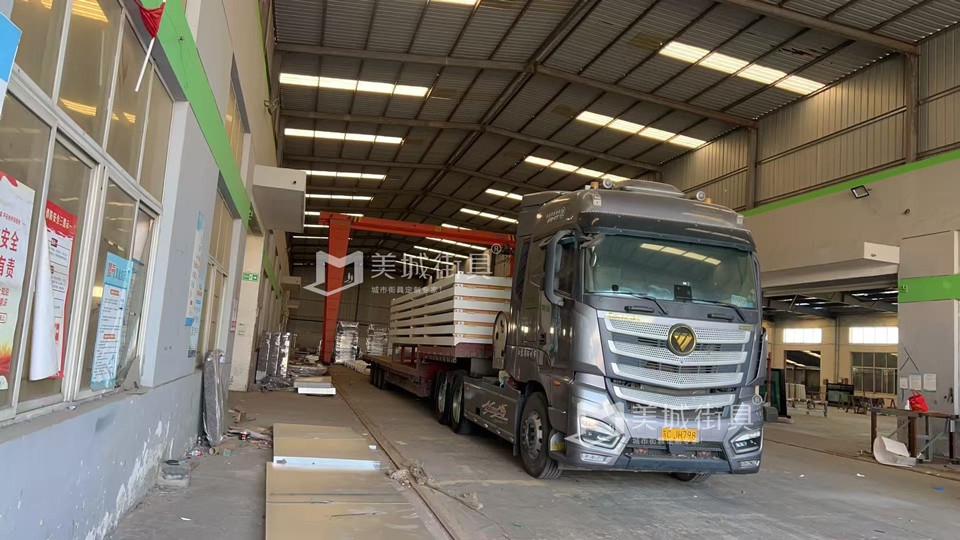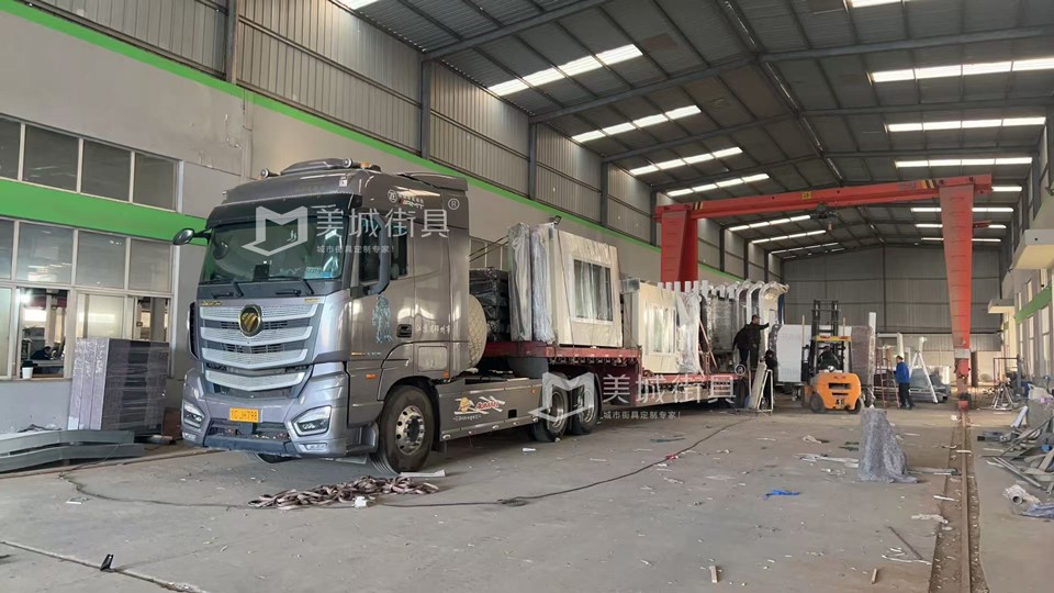 江蘇美城街具供應(yīng)新疆第七批候車亭公交站臺發(fā)貨案例,以下是候車亭站臺發(fā)貨現(xiàn)場圖: