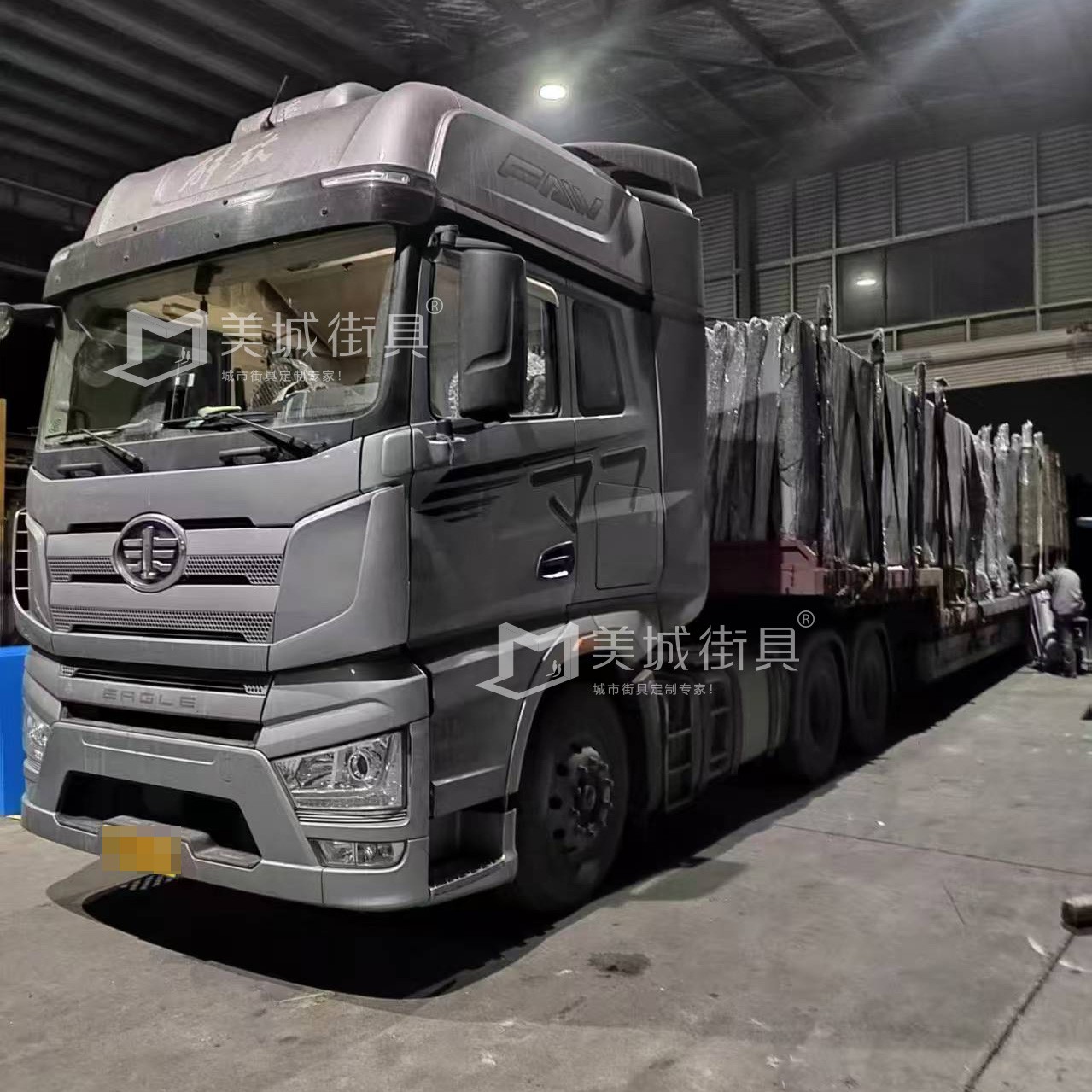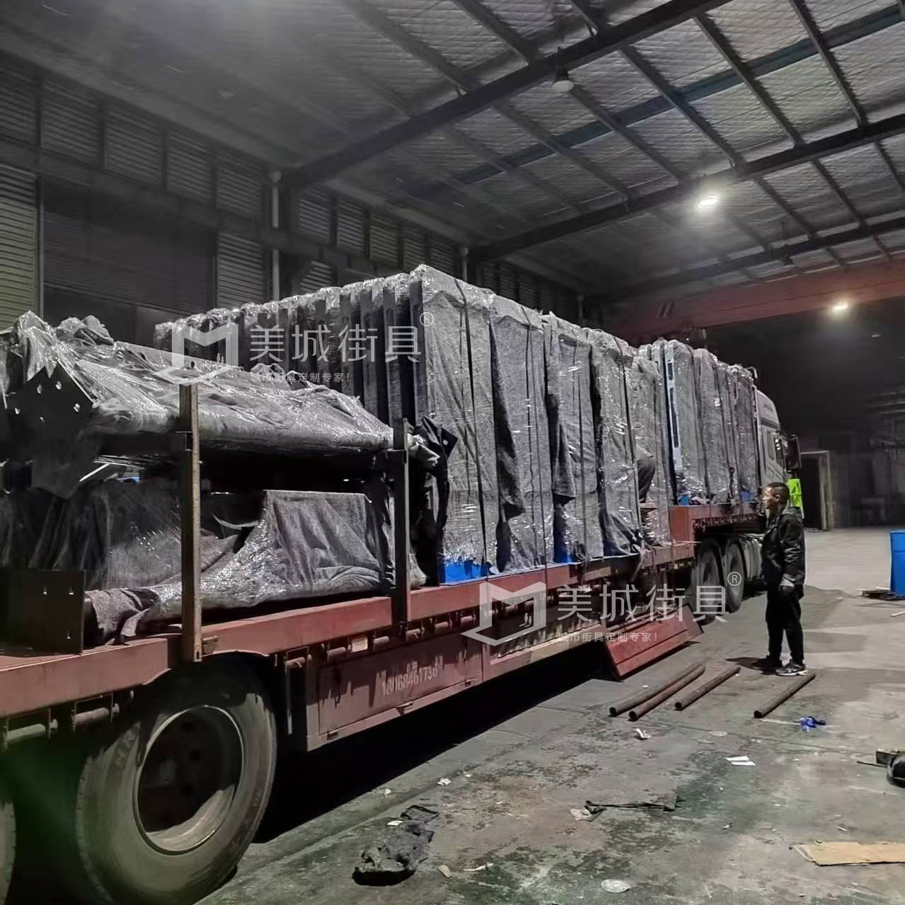 江蘇美城街具供應(yīng)葫蘆島第一批候車亭公交站臺發(fā)貨案例,以下是候車亭站臺發(fā)貨現(xiàn)場圖:
